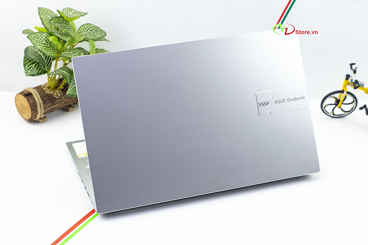 Logo Vivobook được đặt lệch tạo điểm nhấn hiện đại, phù hợp với học sinh, sinh viên, nhân viên văn phòng, freelancer hoặc người thường xuyên di chuyển.