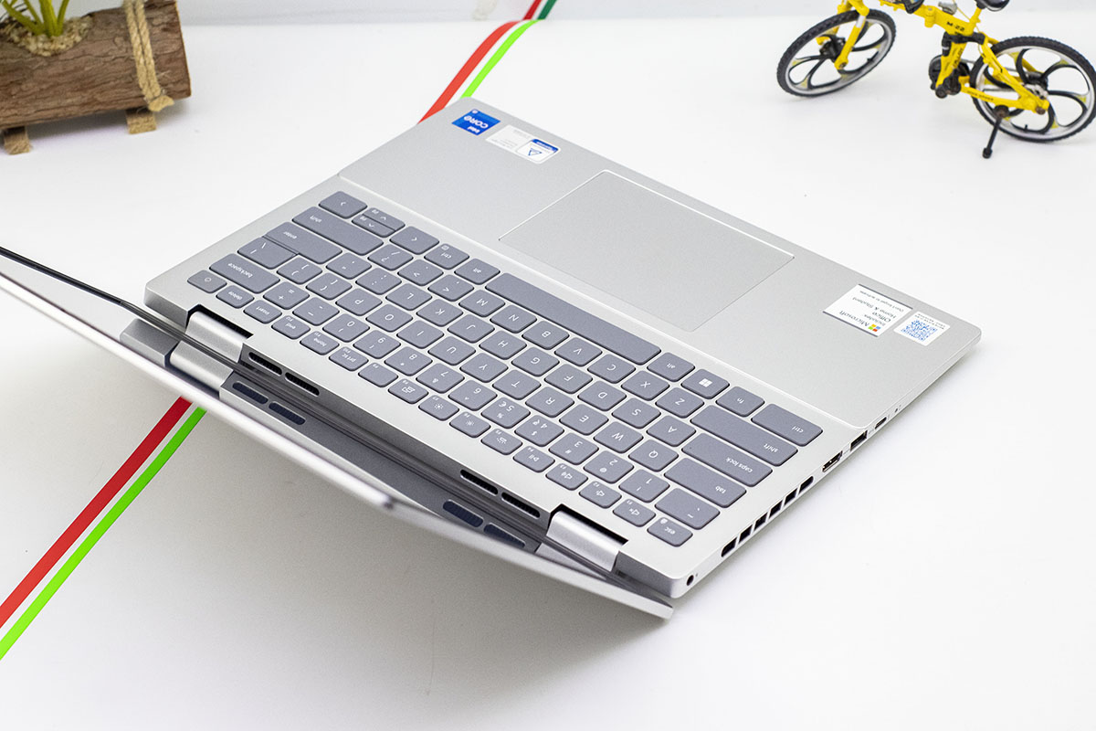 Bản lề: Thiết kế bản lề chắc chắn, hỗ trợ góc mở rộng giúp việc chia sẻ nội dung hoặc thao tác trên đùi trở nên thuận tiện hơn.