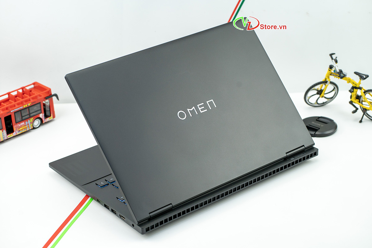 Máy được hoàn thiện từ chất liệu nhựa cao cấp kết hợp với khung hợp kim, tạo cảm giác vô cùng chắc chắn. Logo OMEN được in chìm tinh tế trên nắp máy thay vì logo kim cương xanh trước đây, giúp máy trông chuyên nghiệp hơn, phù hợp để mang đi làm việc tại văn phòng hay quán cà phê mà không quá gây chú ý.